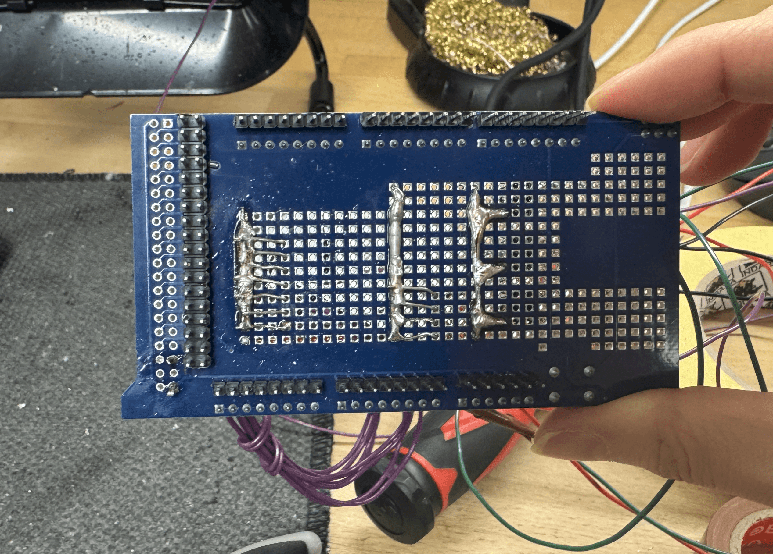 All connections were soldered onto a Prototype Shield board (Figure 17), which was plugged directly into an Arduino Mega.