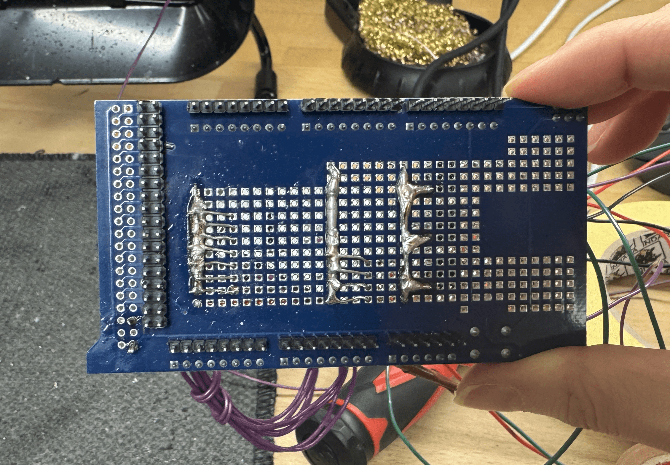 All connections were soldered onto a Prototype Shield board (Figure 4.2), which was plugged directly into an Arduino Mega.