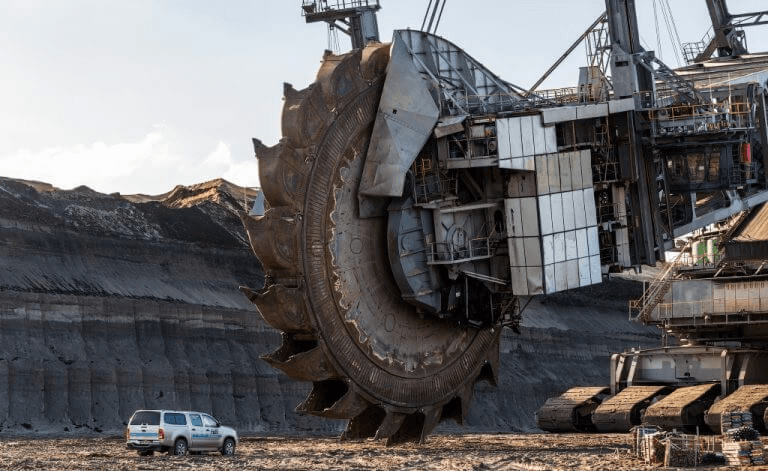 Mineral extraction is carried out by digging enormous open pits into the earth's surface. Some of them are so large that they are visible from space. What particularly struck me was the Bagger 293, a bucket-wheel excavator, the largest land vehicle ever built. Its vast rotating wheel of scooping buckets makes the sheer scale of the mining industry, and the global demands of raw materials for technology visible.