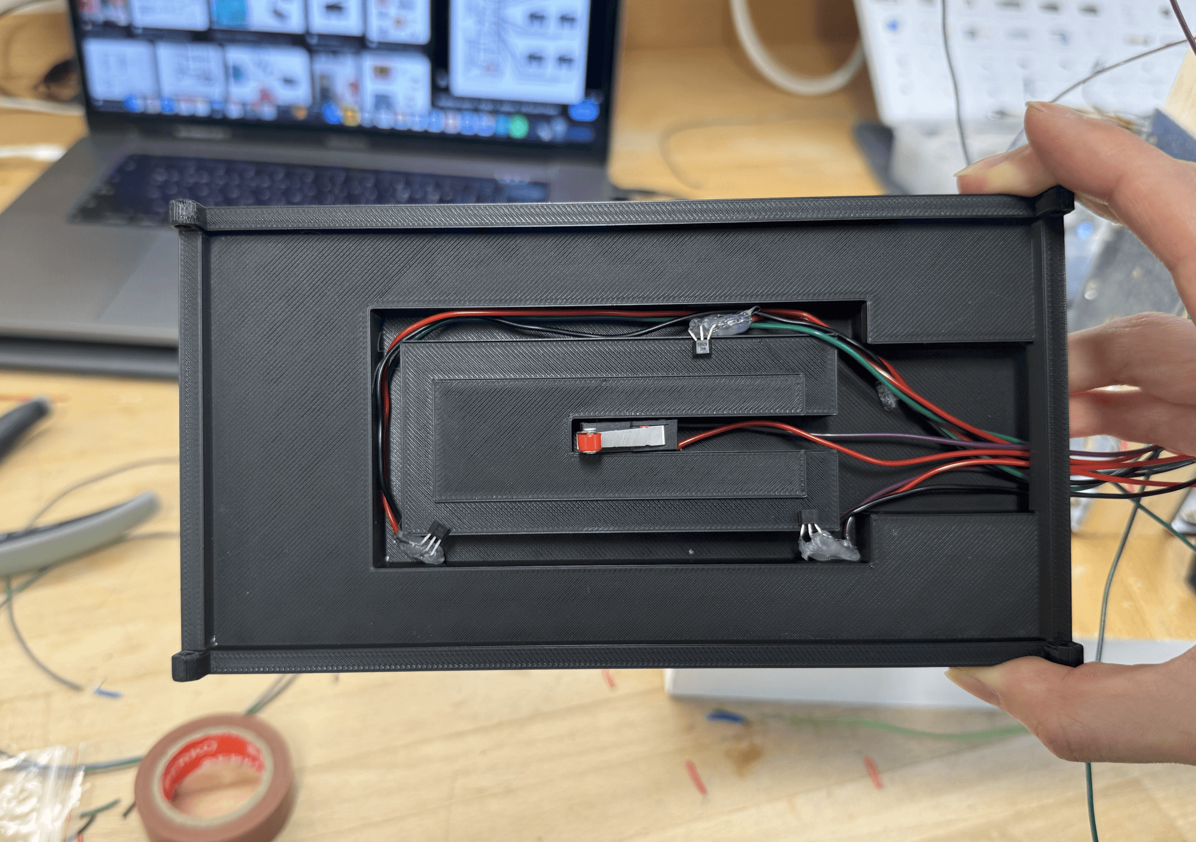I also added an Endstop switch as a trigger for phone placement, and as a fallback in case no magnetic value change is detected, ensuring the scale responds regardless (Figure 4.1). For initial calibration, three buttons allow manual adjustment of the motor position: left, right, and confirm.