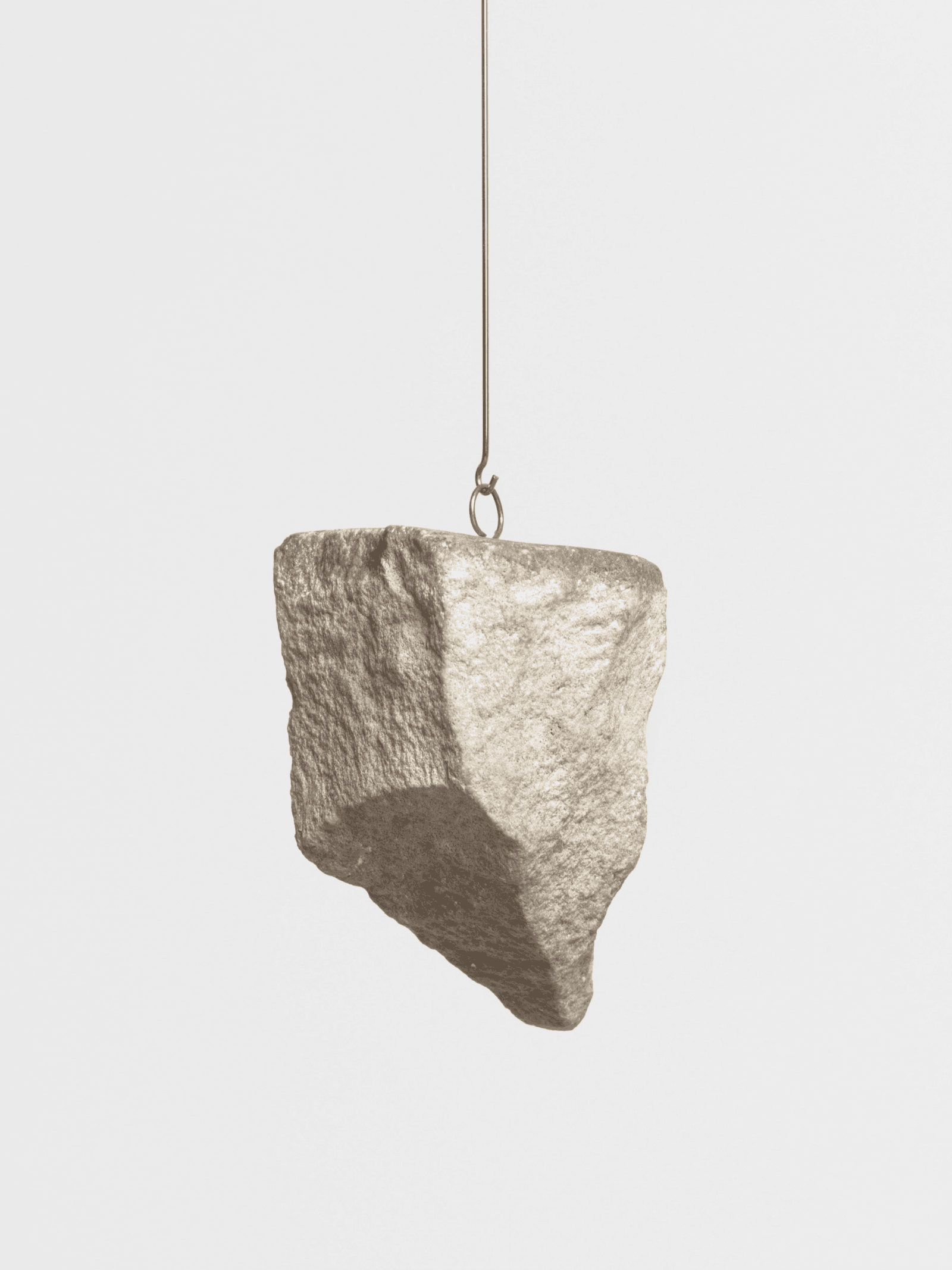 Unexpectedly, the rock slowly rises whilst the smartphone descends. This inverted movement reflects the density of minerals extracted from the earth and embedded within the device. The movement is controlled by a geared stepper motor, and the degree of movement is determined by readings from magnetic sensors installed beneath the tray.